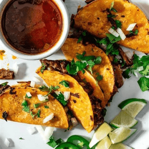 Served with our Birria broth, cilantro, and onions.