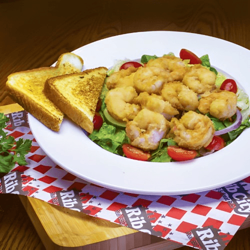 Topped with a lotta crunchy fried shrimp. All our fresh garden salads are served with garlic toast & choice of housemade dressings bleu cheese, ranch, thousand island, honey mustard, fat free Italian or oil & vinegar. Top any salad with shredded cheese & bacon for an additional charge.
