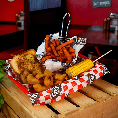 1/2 rack of baby back ribs and delicious, lightly breaded shrimp. Served with garlic toast and a choice of 2 signature sides.
